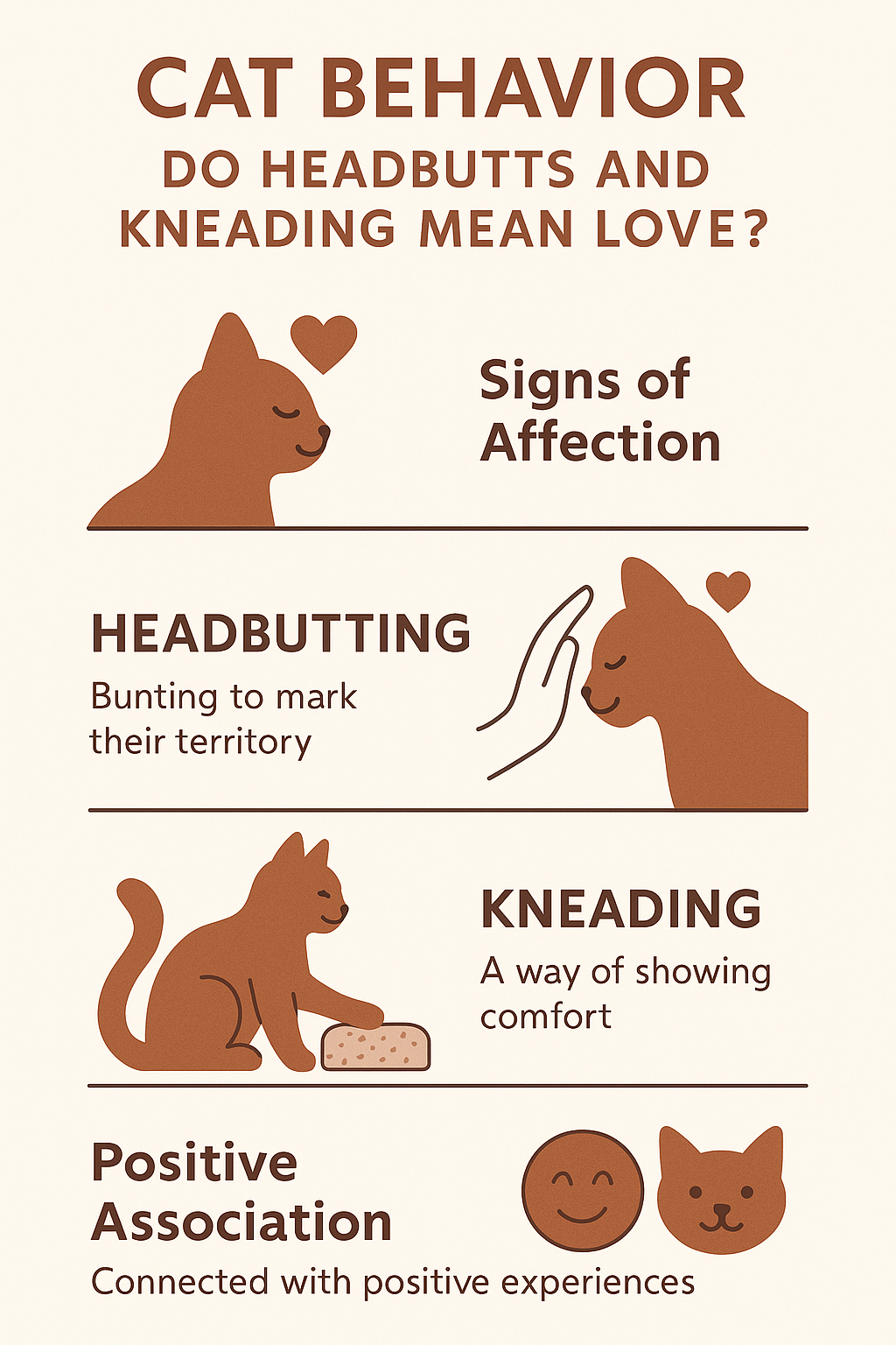 TL;DR: Cat headbutts and kneading are behaviors that convey trust and affection. Headbutting marks you with their scent as a sign of social bonding, while kneading reflects feelings of comfort and safety.