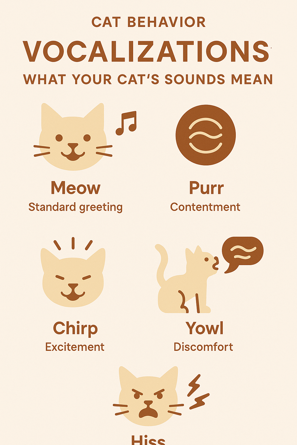 TL;DR: Cat vocalizations are a unique form of communication with humans. Understanding them involves recognizing different sounds like meows, purrs, and chirrups, each indicating various needs or emotions.
